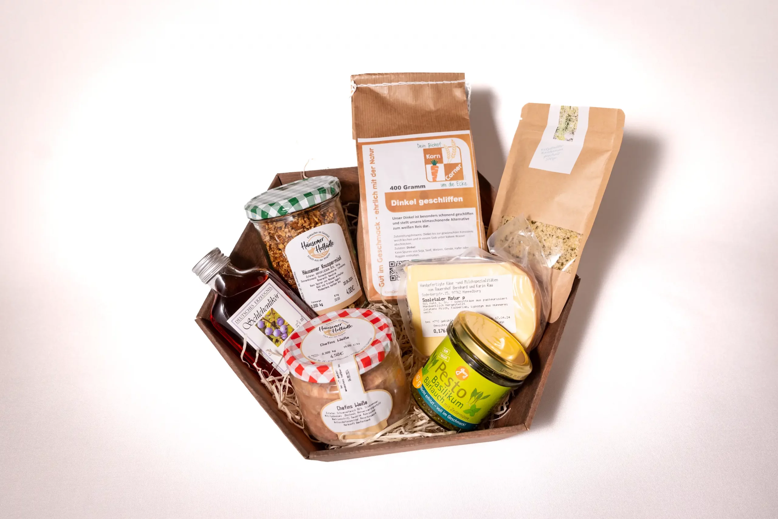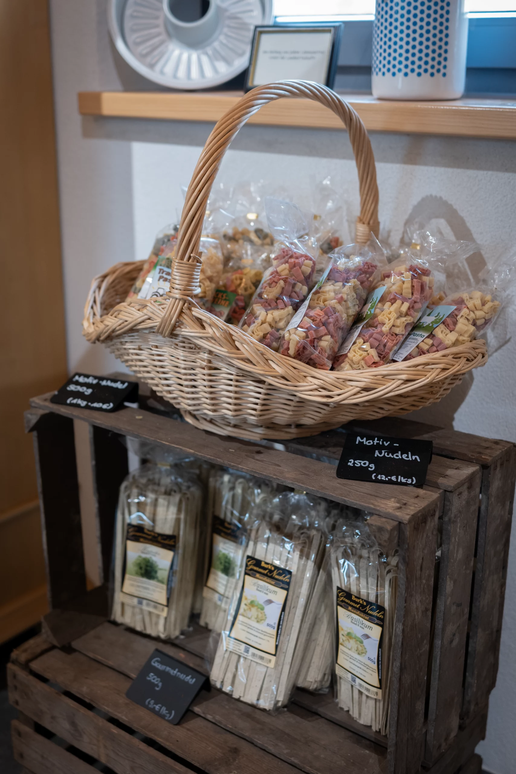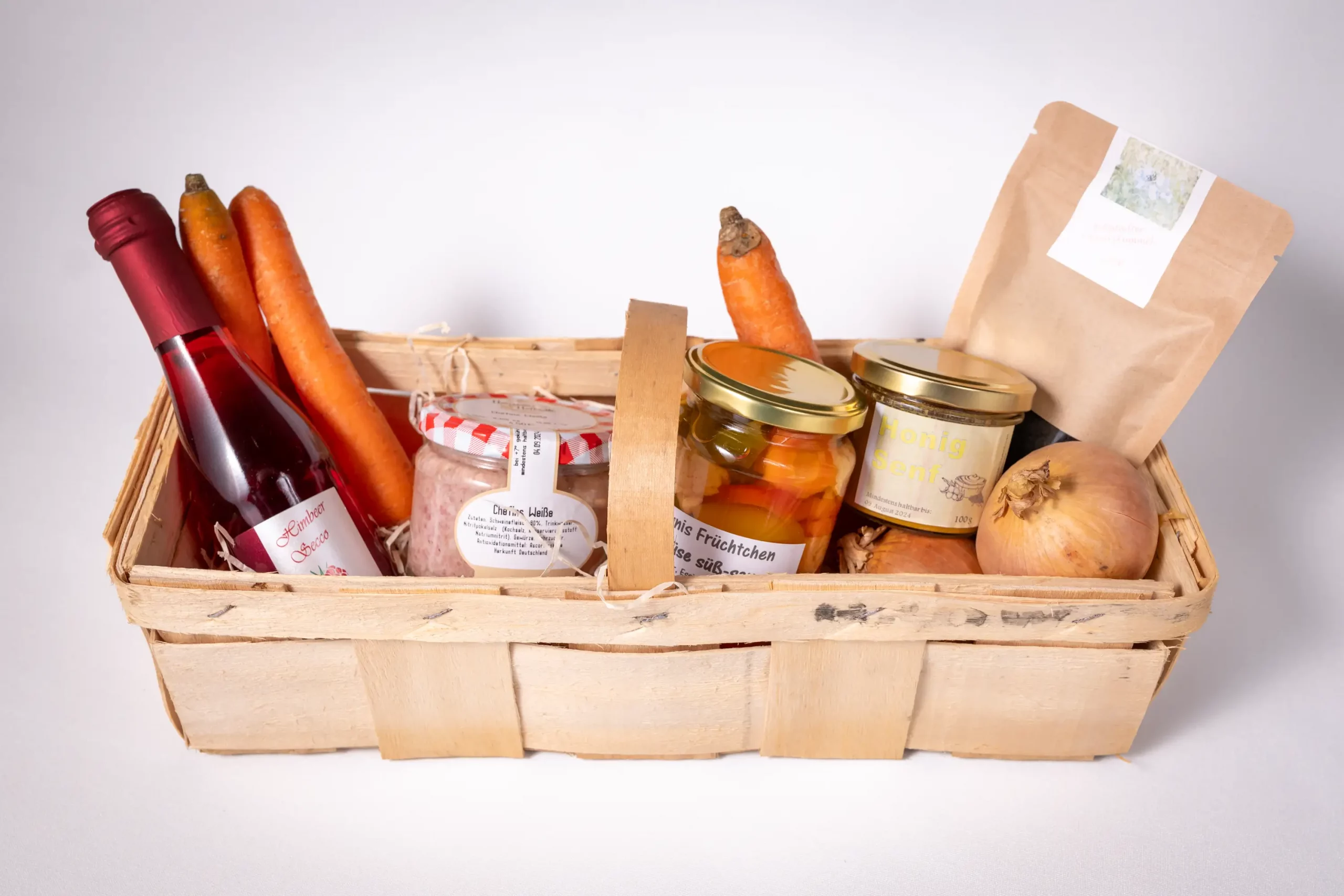 Neben Lebensmitteln bieten wir auch diverse andere Produkte wie Kerzen, Deko, Gutscheine für unseren Laden und individuell zusammengestellte Geschenkkörbe an.